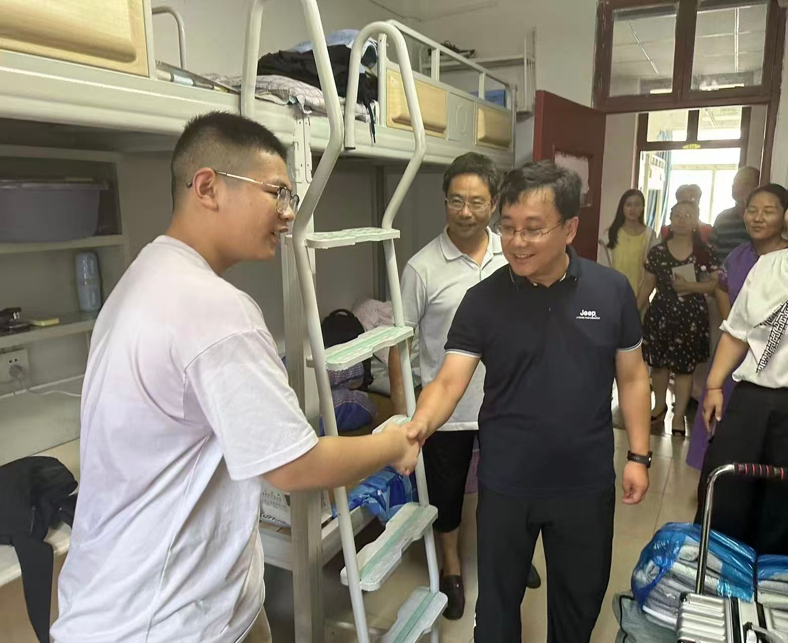 调研过程中,瞿博阳一行首先实地察看了书院的教学空间、学生活动中心、自习室、生活服务驿站等场所,详细询问了空间使用效率、设施维护情况及师生日常需求。他们走进新生宿舍,与新生及家长热情交谈,欢迎他们加入中原工学院大家庭。